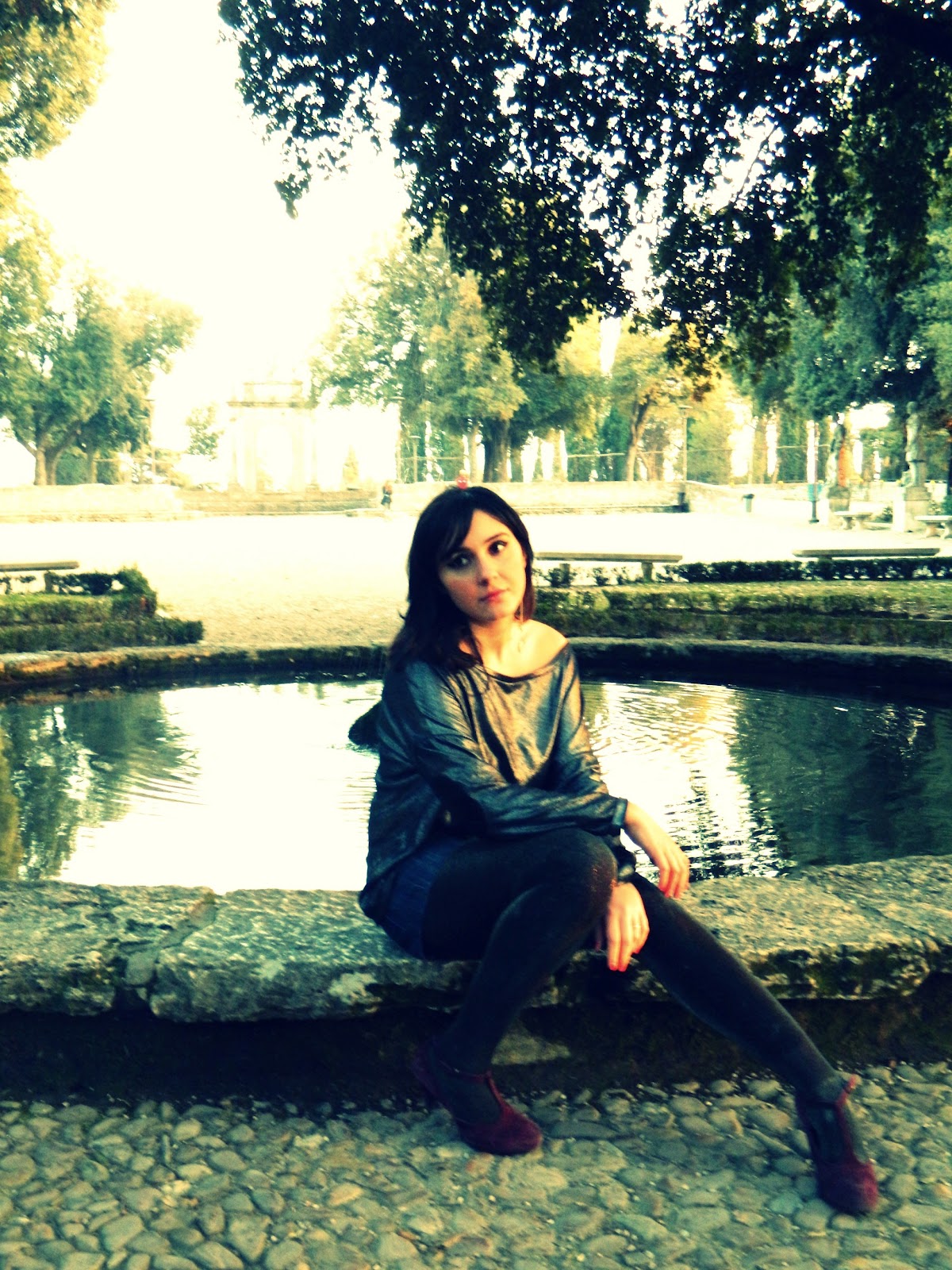 MY sweetness today i want to show you this beautiful place,Frontone’s Gardens,where you can find a very classical atmosphere,given by a wonderful arc placed on a small amphitheater.I choose just this scenery for my new outfit with my new Bershka metallized gray T-Shirt,perfect for a simply afternoon with friends but also for disco!i used it with an Alcott shorts,bright tights Calzedonia and a beautiful