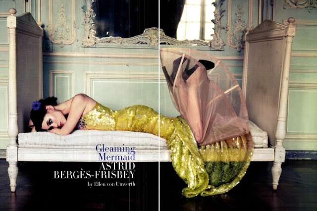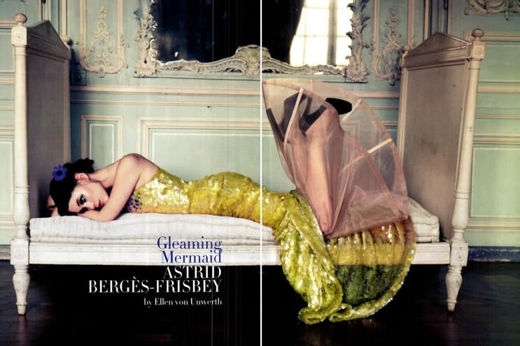 Sfogliando Vogue di Marzo sono rimasta incantata dalla bellezza del servizio fotografico di Ellen von Unwerth, che vede per protagonista la bellissima Astrid Berges-Frisbey, resa famosa in tutto il mondo nel ruolo della dolce sirena di Pirati dei Caraibi-Oltre i Confini Del Mare. Bene questi scatti stupendi ispirati al fascino retrò e aristocratico mi hanno fortemente colpito, tant’è che se anche Vogue li pubblicava un mese fa mi sono decisa finalmente a farne un post! Io personalmente li trovo stupendi, l’alta moda si respira in ogni dettaglio, e così anche la bellezza della Frisbey, che con la sua aria innocente e malinconica dona uno spessore speciale ad ogni foto. E voi che ne pensate?