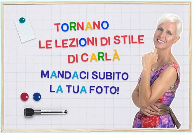 La rubrica è ormai alla seconda edizione e si preannuncia molto molto interessante. In più oltre al privilegio di ricevere un giudizio dalla style coach per eccellenza della tv italiana, partecipare a Lezioni di Style ha un pregio in più. Le prescelte dalla redazione che verranno sottoposte al giudizio di Carlà riceveranno in omaggio 2 biglietti per assistere a una tappa dello spettacolo teatrale con il quale Carlà ha inziato a girare lo stivale per diffondere ovunque lo stile.