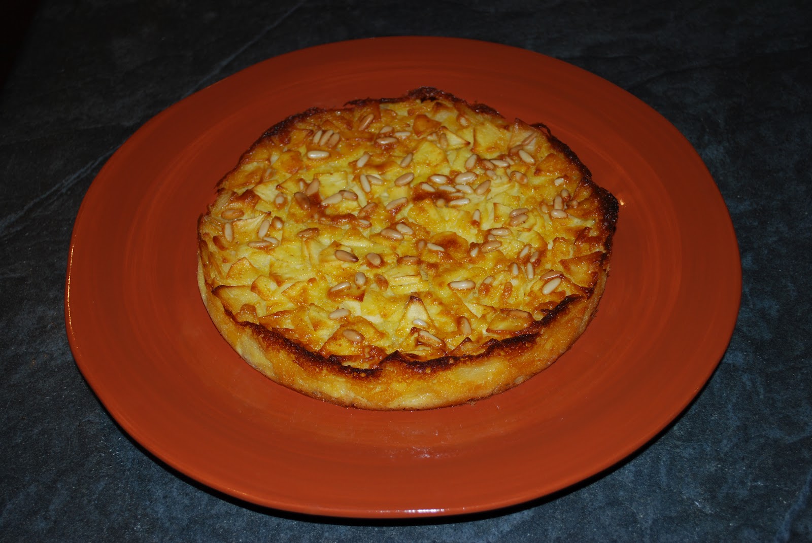 A questo punto spargete le mele sull’impasto in modo da ricoprire tutta la superficie e, se volete, aggiungete dei pinoli.