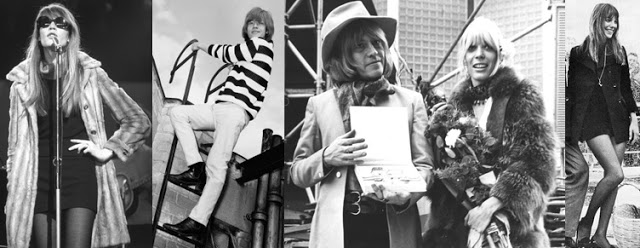 Dagli inglesi anni 60 ruberei gli onnipresenti pellicciotti, i cappotti e i trench in tutta la loro semplicità, le righe, le cascate di collane e sciarpine multicolor, gli immancabili occhiali da sole e gli stivaletti alla Beatles, i collant colorati e i miniabiti très chic. Tutto ciò risulta familiare alle rock band di quel periodo, ma anche ad icone di stile (oltre che musicali) quali Francoise Hardy, Anita Pallenberg, Jane Birkin e Marianne Faithfull, non a caso ispiratrici delle nostre attuali fashion icons britanniche, da Alexa Chung a Kate Moss (giusto perchè non l’avevo ancora nominata in questo articolo).
