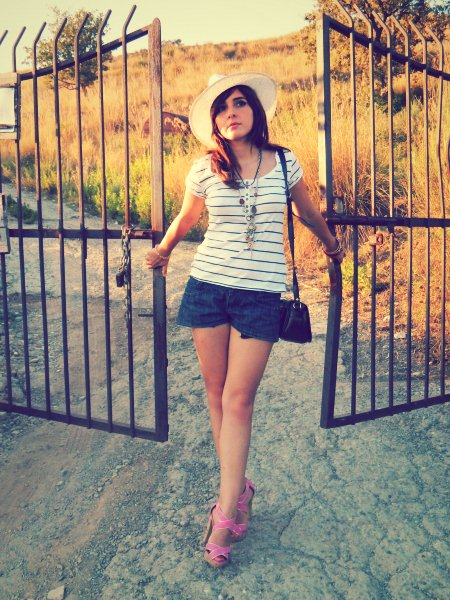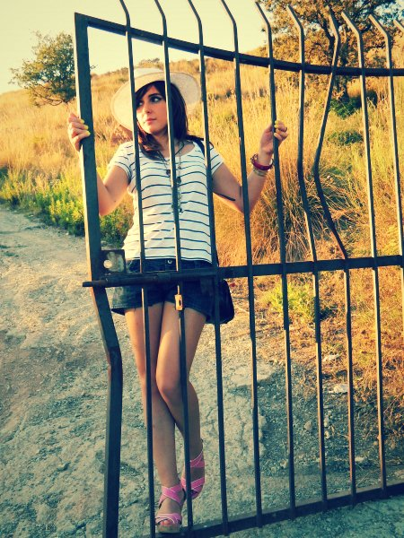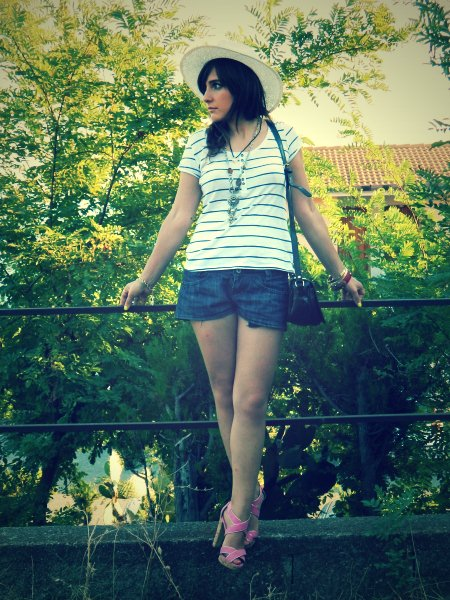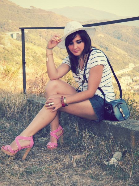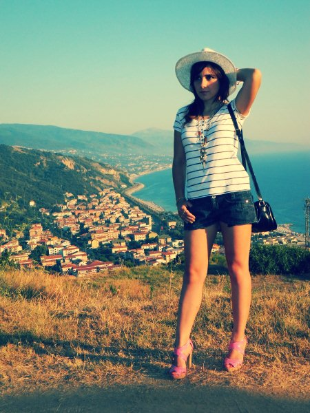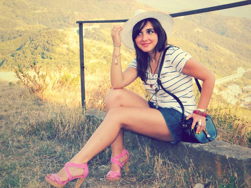 August is literally flying off, and how great it is to resume the life of every day, I know that I will miss all this. And then, tell me, how do you let a sea so! But what I like most, is to look at the beaches and waves from another perspective, less chaotic, more wild. For this reason I chose to design an outfit “offshore” or better to mix the peaceful beauty of the sea in August, with the wildest of small hills, rich colors, shades and views that are the envy. Here we are in the town of Santa Rosalia, right on the rock of Queen, which I have shown in a previous spring outfits. The environment a little rude and pristine, sparked my imagination, making me choose an outfit ranch-style glam. Perfect straw hat Accessorize with leather strap and neck strap vintage, in my opinion two accessories that have characterized this absolutely look. The T-shirt is Pimkie (thanks Erika!) And new brand, a gift I received a few weeks ago, with perfect timing 🙂 I would say the denim shorts Alcott complete the package, accompanied by a multitude of rings, bracelets and necklaces this time. Special attention goes to the point of light in the shape of heart Grillo Jewels given to me yesterday by Salvio at our 4th anniversary engagement (eh already own four!) That I wanted to wear at all costs and that indescribably wonderful. In short, my dear, enjoy these landscapes and the wild look … I hope you like how I like it! A big kiss to all!