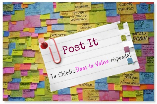 Ed eccoci al primo appuntamento con “Post It”, la nuova nuovissima rubrica, riguardante le domande di voi lettrici e che ci terrà compagnia ogni martedì di questo secondo e nuovo anno di Dans la Valise! “Post It” vuole essere uno scambio di opinioni, di dubbi e di chiarificazioni tra amanti del make up e della moda, cercando di ripondere alle esigenze di tutte quelle ragazze che vogliono sentirsi, giorno dopo giorno, sempre più perfette. Allora che aspettate ragazze..inviatemi le vostre domande sulla pagina facebook cliccando QUI oppure lasciate un commento qui sotto con nome e domanda relativa..ogni settimana verranno selezionate 3 domande e compariranno sul magico Post It della settimana successiva..perchè la regola è solo una: Tu chiedi…Dans la Valise risponde!