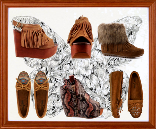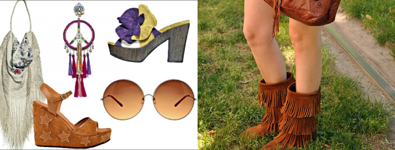 Quando ho deciso di trattare l’argomento Scarpe per il genere hippie style mi sembrava un pò una contraddizione. Per ovvi motivi ciò che per primo mi è venuto da pensare erano accessori come sandali ultrabassi o piedi nudi su distese d’erba sconfinate. Che pensieri scontati! Poi ho pensato alle frange, alle zeppe, a tutti quei fantastici centimetri di cielo che i tacchi regalavano anche ai sognatori di allora. Dunque perchè non osare? Io addirittura ci vedrei bene un Jeffrey Campbell vi dirò!sopratutto se il modello è quello delle Snick Fringe con superzeppa e frange selvagge. Ma per le più comode ecco le classiche Minnetonka, comode e fresche. Il colore che per me rappresenta meglio questo stile è proprio il marrone, il beige, i colori della terra insomma…soprattutto per l’inverno. E tu mio caro flower power non restarci troppo male(ci hai già tenuto abbastanza compagnia la scorsa primavera!). In ogni caso penso che la bellezza di questo stile sia veramente intramontabile…io personalmente lo adoro! Spesso si può incorrere nell’errore di pensare che lo stile hippie sia solo primaverile. Assolutamente no! Questo nostro omaggio di oggi ne è la prova…e se anche voi come me siete vittime dei sogni, della malinconia di epoche passate e dell’intramontabile fascino degli anni 70 non rinunciate…siate libere di essere voi stesse, ma con una marcia in più…i consigli di The Fashion Tea!