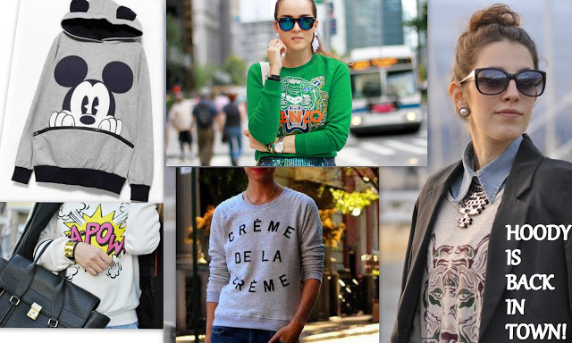 Ok: parliamo come mangiamo 🙂 Vi sarete senza dubbio accorte del grande ritorno della felpa, la classica felpa a girocollo e tinta unita, quel capo da abbigliamento un po’ sfigato che per anni abbiamo snobbato e adoperato solo per quelle occasioni anti fashion come l’ora di educazione fisica a scuola, la passeggiatina notturna con il cane e così via. Bene, rispolverate le vecchie amiche: la felpa è in! Complice quella iconica verde firmata Kenzo vista e ri-vista durante le fashion weeks ormai se ne vedono di tutti i modelli in tutti i negozi. Consigli all’acquisto? Compratela larga per l’effetto volutamente shabby, a girocollo, con inserti in pelo per combattere il freddo o con scritte ironiche per sdrammatizzare. Consigli per l’utilizzo? No alle sneakers da corsa, si a scarpe ed accessori femminili. Ragazze: hoody is back in town!