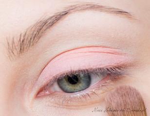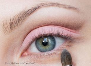 Ora con l’ombretto pink andate a coprire la palpebra mobile, in modo che il distacco tra la parte superiore e inferiore sia visibile ma sempre delicato.