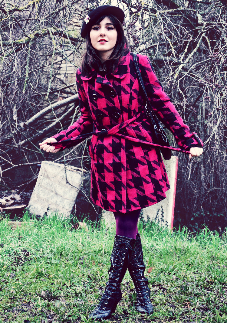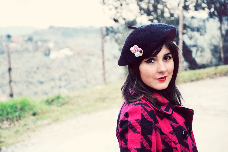 Ok, a parte che sei la fotocopia vivente della mia migliore amica… ma che adorabile il cappottino! Io AMO il rosso, non c’è cura per questa malattia. Complimenti, l’outfit è azzeccatissimo. Inoltre sono fortemente innamorata del cappellino e della spilla che ha su. Assolutamente ADORABILE.