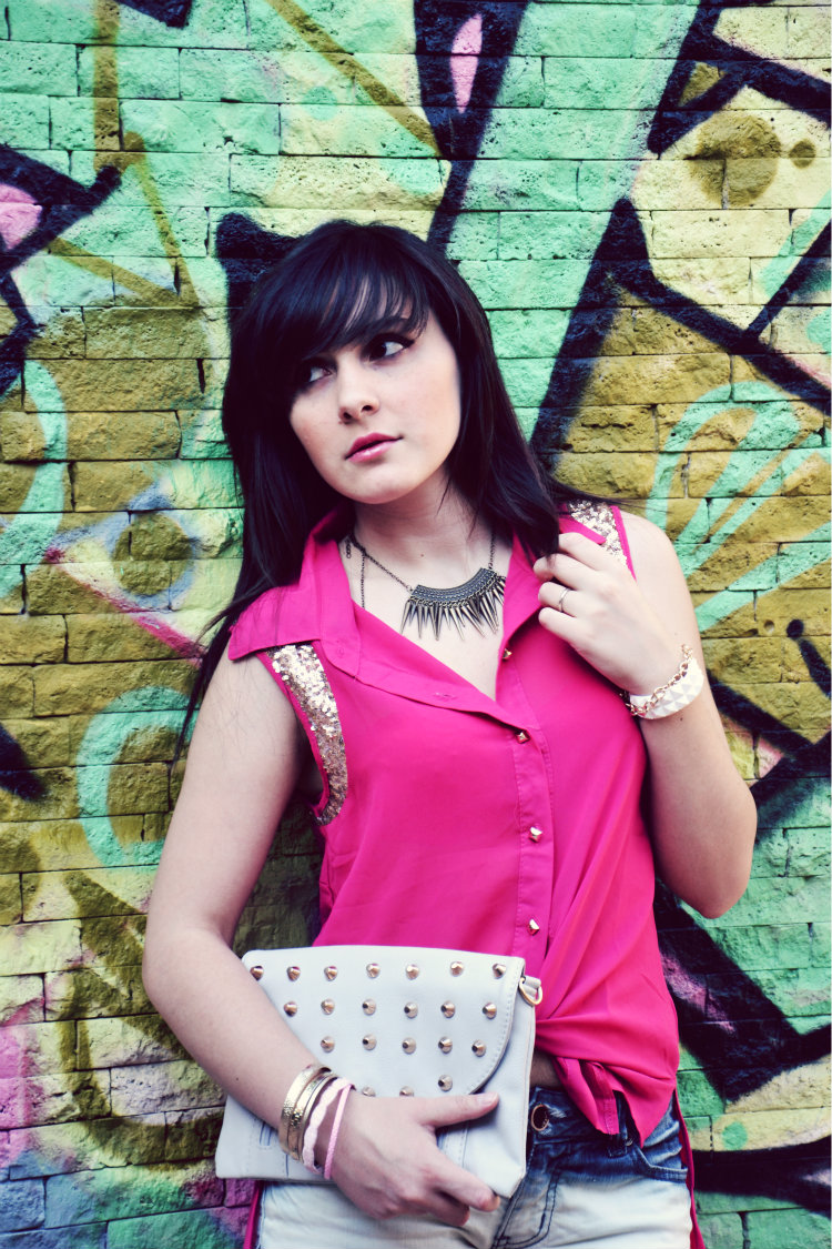 Sequins and a pink touch. These are the main ingredients of today’s look. Apart the shorts…because those can’t miss. Today I’ll be essential, short and concise. Sometimes it better to talk about the pictures, as not to affect some judgment too quickly. Army of joy I went out and took these pictures, now that summer has arrived here, within the walls of Perugia…and that’s between a mural and the other, between flashes of pink, I dressed in lights and colors…rebels, with a soul…