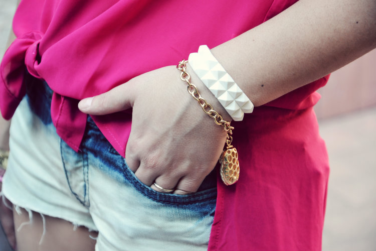KiKi Shirt | Handmade Shorts | Harlem Bakery Heels | Stylight Necklace| DBLab Design soft studded bracelet | Roman’s Pochette | H&M Bracelets |