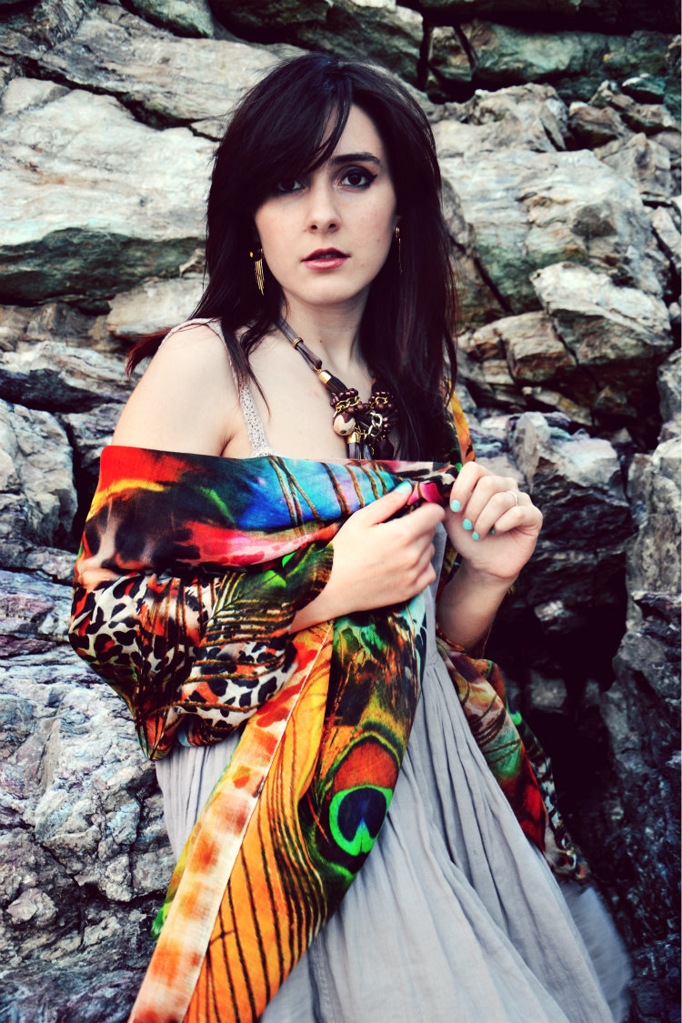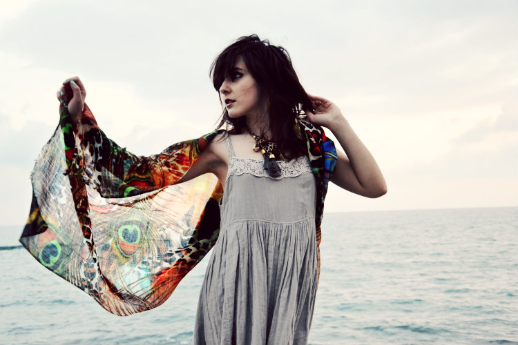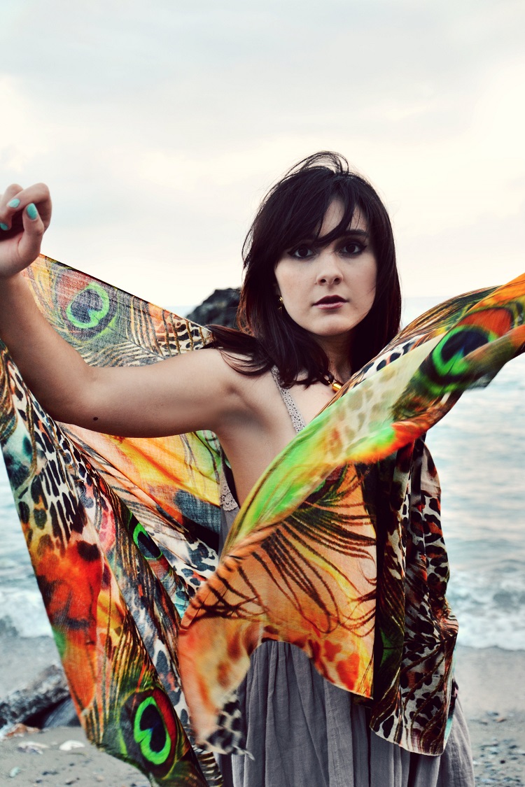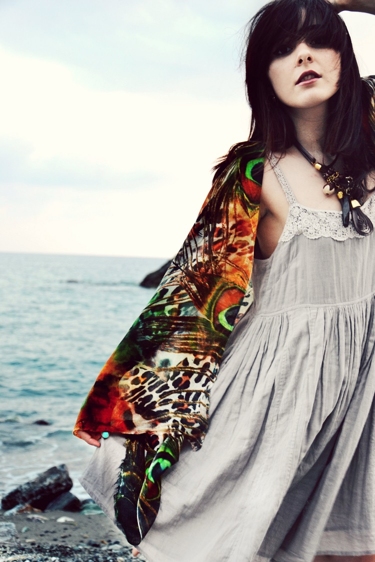 Hello my dear! Today I show you one of my favourite outfit, another shooting directly from my land, Calabria. I can not tell exactly what it is to make these pictures so magical, perhaps the stormy sunset in which they were taken, perhaps the joy and lightness with which we have worked … but among other things, a’m sure, much of the credit goes to my new and precious stole Novamood, a head of a beauty out of the ordinary, I chose to make the protagonist, comparing it to a neutral dress and accessories that to summon the beautiful shades of orange and yellow. An animal print very original, which unites in himself the elegance of peacock feathers with the most wild animal, in style Novamood, a brand can transform scarves, sarongs and shawls in real masterpieces of art. I admit that choosing between the vastness and beauty of so many leaders was a really difficult decision, I wanted to take them all! If you are wondering why you just need to take a look at the website Novamood, my new temple of elegance.