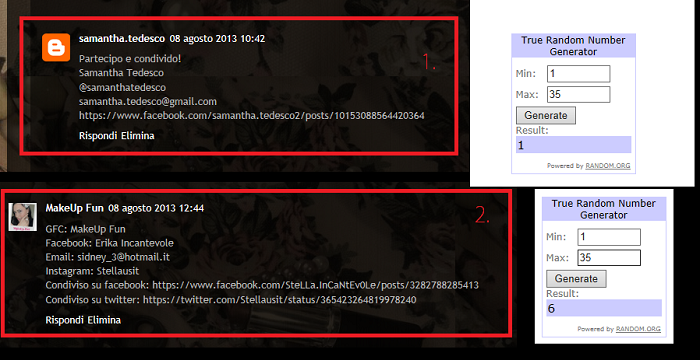 NOTA: L’estrazione è stata effettuata solo tra gli effettivi partecipanti al giveaway senza tener conto dei commenti casuali e non inerential giveaway. Perciò i commenti tenuti in considerazione non sono 54 ma 35 effettivi. In base a ciò si aggiudicano gli abiti il commento numero 1. di Samantha Tedesco (abito kitty) e il numero 6. di Make Up Fun (striped Dress). Congratulazioni ragazze! Sarete contattate al più presto da Romwe per la ricossione dei premi!