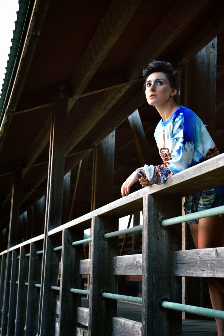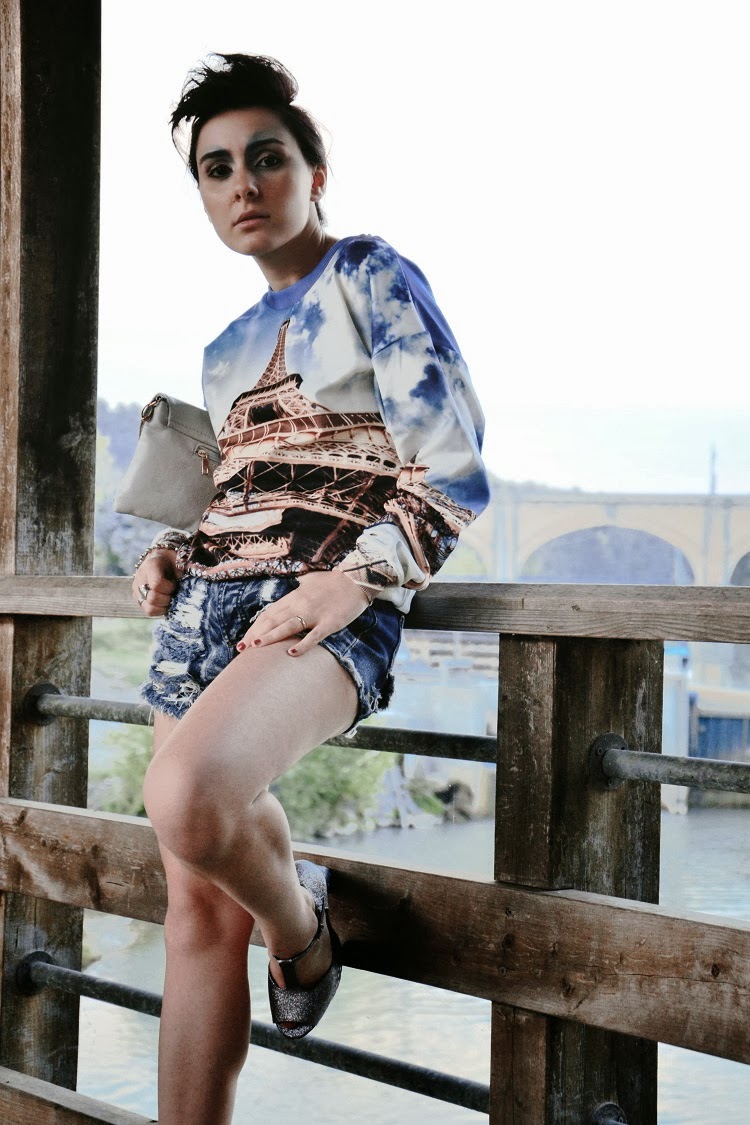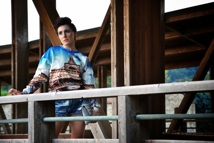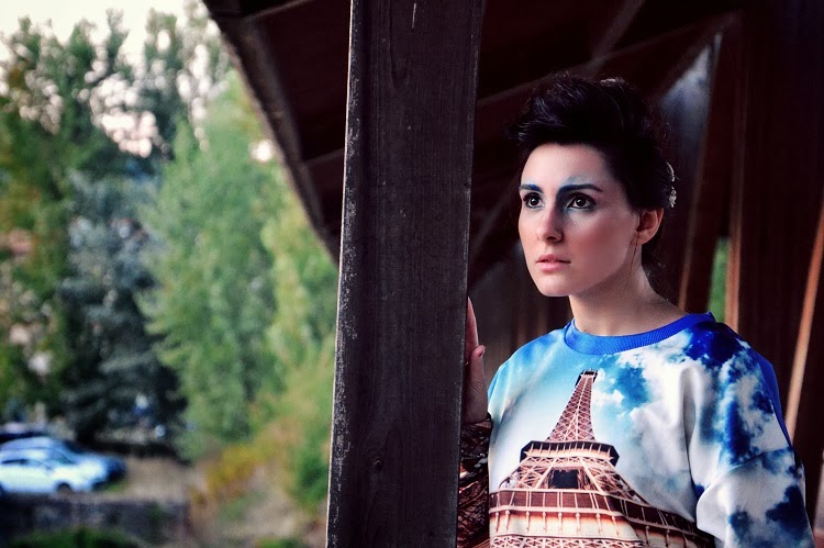 Buongiorno miei cari! Oggi finalmente torniamo agli outfit e questa volta lo facciamo in un modo molto speciale. Vedete come sono conciata..o meglio acconciata? Tutto merito di un team specialissimo, quello del beauty center Danae, che con un trucco davvero intenso e questa cresta rockettara mi hanno dato l’occasione di svestire per una volta i miei soliti panni e trasformarmi per una volta in un cigno davvero molto particolare. E poi che dire, il trucco richiama perfettamente i toni della mia nuova felpa Romwe con tanto di Tour Eiffel in bella vista. La location รจ a dir poco spettacolare, unica pecca la luce che purtroppo non รจ stata cosรฌ clemente come speravamo..ma che volete farci, spero comunque che il risultato vi piaccia! Aspetto come sempre le vostre impressioni! A presto ragazzi!