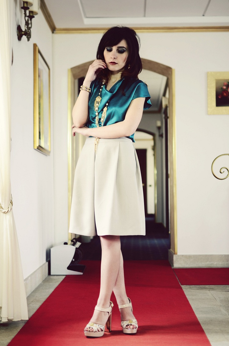 Molto fini ed eleganti queste creazioni moda firmate Atelier Maja. La location è lussousissima e tu sei splendida con quella blusa, lo smeraldo è un colore che ti dona.