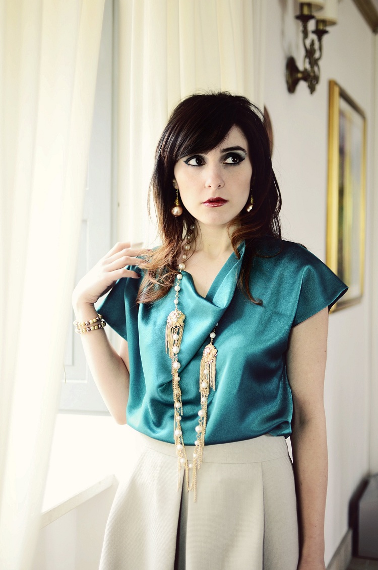 bellissima come sempre la location…..il tuo outfit meraviglioso mi piace molto la blusa color smeraldo!!!