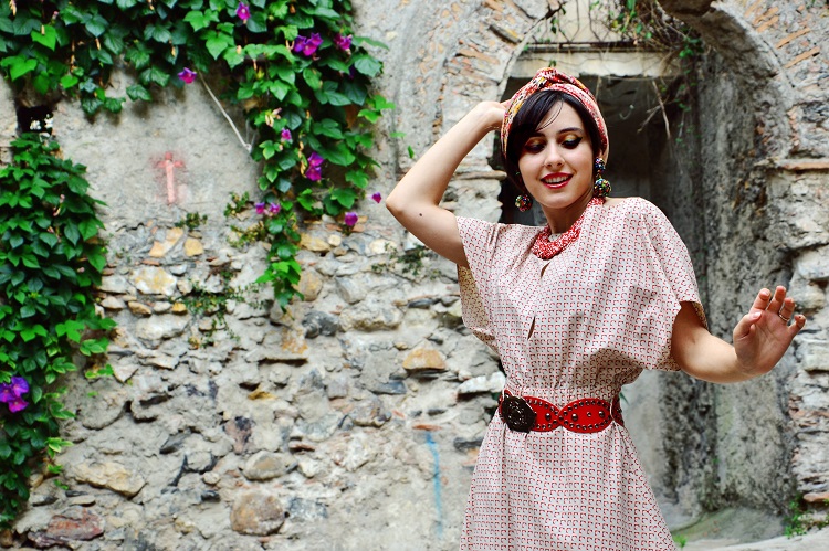 Esistono posti magici dove sembra che il tempo si sia fermato per davvero. Posti che sai di avere accanto ma non hai mai visto, quelli che compaiono e scompaiono come oasi nel deserto, finché non li scopri, li immortali e diventano per sempre tuoi. E’ successo così, quasi per caso, che ho trovato questo spazio di paradiso tra le strade scoscese di Cetraro (CS, Calabria), questo luogo sospeso nel tempo al quale resistere è stato pressoché impossibile. Se poi per una strana combinazione di elementi, ad arrivarti a casa quel giorno è proprio il tuo nuovo Summer Dress Retrò firmato DAZE è davvero destino. Il vintage outfit di oggi è stato infatti appositamente creato per questo meraviglioso abito d’ispirazione vintage, reso più audace dai tagli praticati sulla parte superiore che gli conferiscono un design moderno e originale, arricchito da giochi geometrici e tocchi di colore che lo rendono perfetto in qualsiasi occasione. Non è stato difficile abbinarlo, anzi devo ammettere che quest’outfit si è letteralmente creato da se. Qualche accessorio vistoso (che ne pensate del mio nuovo turbante handmade?) maxi orecchini coloratissimi e un cinturone in vita e tutto prende forma. D’altronde non sarà il primo e ultimo outfit che vedrete in collaborazione con DazeWear, brand ideato dallo stilista Damiano Zeli, che partendo da una parola chiave “Ispirazione” ha dato vita ad una capsule collection ricca di linee e tagli ricercati e reinventati che vanno oltre la tendenza del momento, con un forte contenuto di stile in grado di colpire anche i più attenti ed esigenti cultori. Fondamentale segno distintivo di questa collezione sono i tessuti, uniti ad una lavorazione di alto livello, (il tutto rigorosamente Made in Italy) che regalano ai capi un valore di livello assoluto, sottolineato dall’esclusività degli inserti. Sono sicura che vi innamorerete di Daze, così come io sono innamorata di quest’abito! Non ci credete? Correte a dare un occhiata al sito e ve ne renderete subito conto..è amore al primo sguardo!