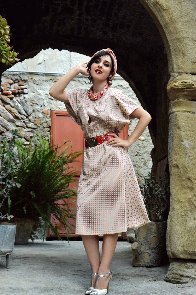 Daze Summer Retrò Dress | Handmade Turban | Vintage Jewels | Kiki Belt | Globo Shoes