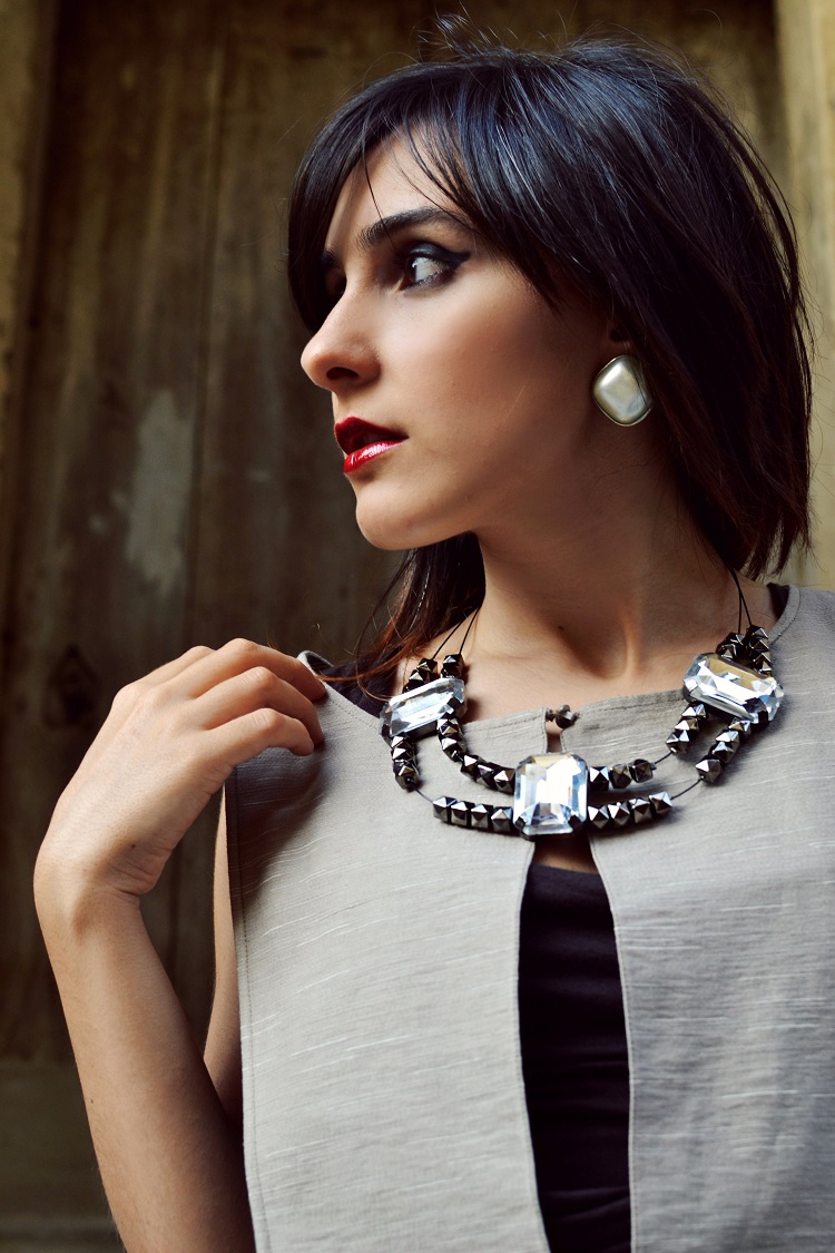 particolarissimo questo abitino! Bellissimi anche gli accessori che hai scelto: collana e borsa soprattutto!! La luce ideale l’hai decisamente trovata… scatti perfetti 🙂 (ogni volta che ti commento non trovo niente che non mi convince volevo solo farti sapere che sei migliorata davvero tanto e ogni volta è un piacere vedere i tuoi post outfit ^^)