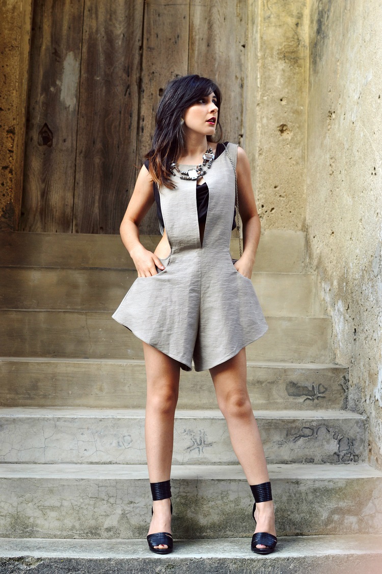 Daze Desert Grey Playsuit | Romwe Clutch| Mango Shoes |