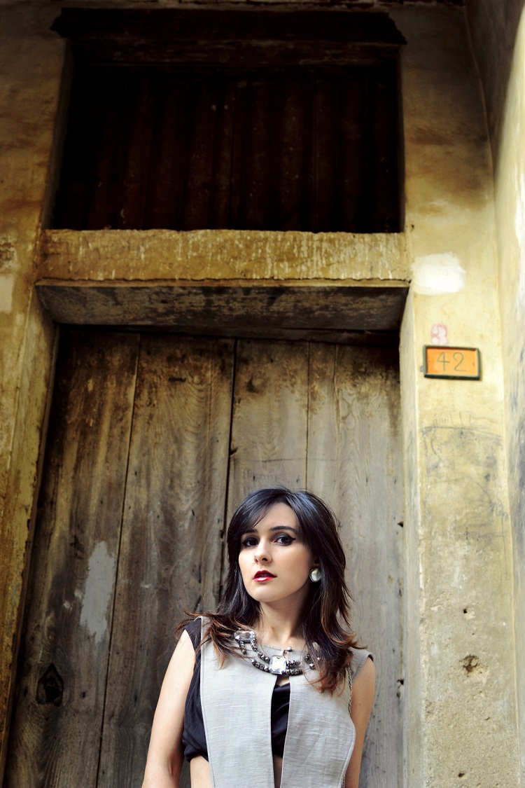 A quest’ora si cerca la luce. E’ una serata strana, quasi dorata, ma non c’è posto per scattare, sembra quasi che ogni angolo sia ammantato da una leggera nebbiolina traslucida che non permetta all’obiettivo di cogliermi nitidamente. Sono le sette meno un quarto, tra poco il sole tramonterà oltre le montagne, sul mare, regalando ancora a chi potrà vederlo, l’ennesimo tramonto, di quelli rossi, carichi, da cartolina. Ma io sono ancora qui, in questo paese un tempo dominato dai normanni, tra le stradine scoscese e le case arroccate, protagoniste di un vita che non è stata la mia, ma che sento nel sangue e nell’anima. Sono ancora qui a cercare la luce. E poi succede all’improvviso…la trovo. Sette scalini, il primo molto alto, diverso, difficile da affrontare con questi tacchi, ma perfetto, per questo mio nuovo abito Daze, per questa playsuit dominata dai chiaroscuri, dai pieni e dai vuoti, che finalmente prende forma, scatto dopo scatto, fino a quando c’è luce, fino a quando si può. Passano i secondi, passano i minuti, “sorridi, voltati, sposta un piede lì, fai vedere meglio la borsa”…e poi eccoci..è tutto finito. D’altronde ci è già stato fatto un regalo. Un altro momento perfetto, un altro perfetto ricordo in questo paese che in fondo è anche un pò casa.
