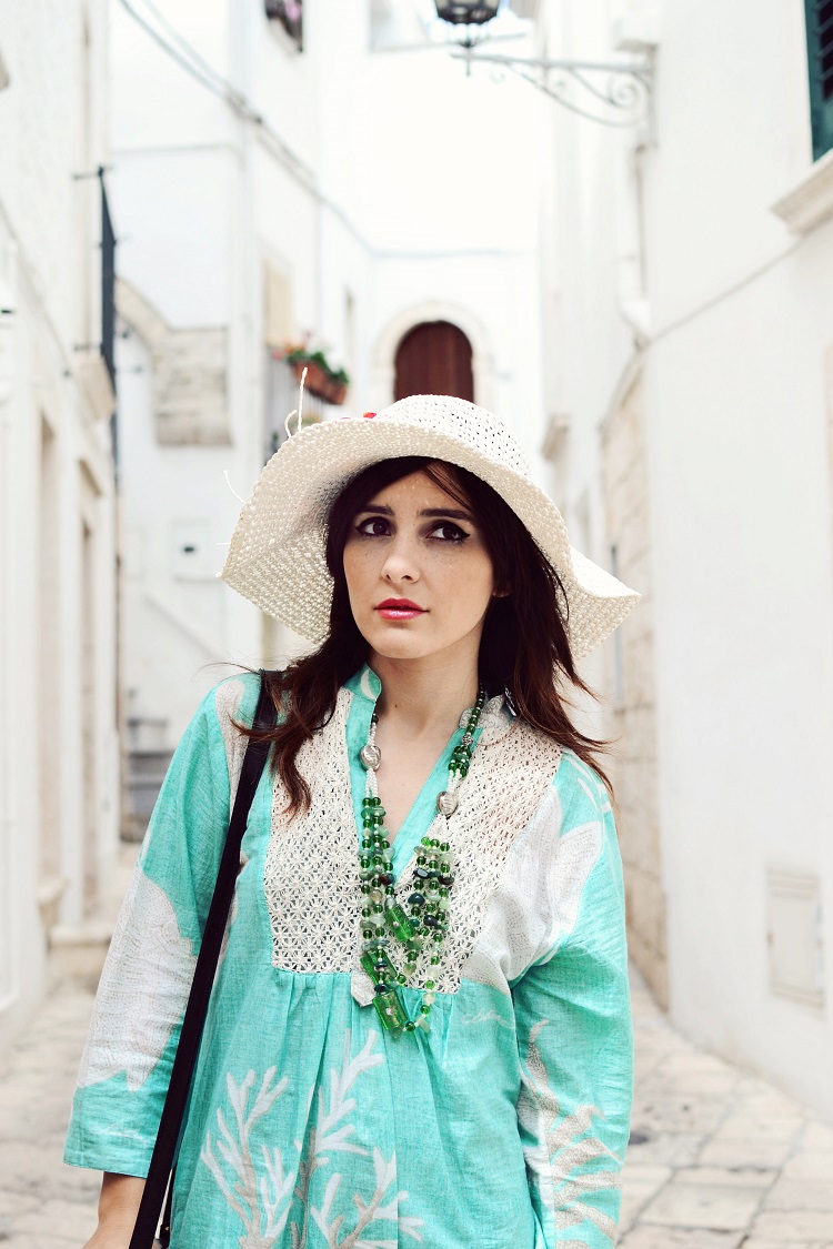 Conosco benissimo locorotondo ed è un paesino tutto bianco che dalle tue foto risalta benissimo. Il caftano poi è bellissimo