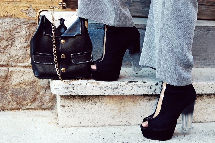 Che stile!! Complimenti come sempre, bellissime le scarpe con il tacco grosso e la borsa simpaticissima!