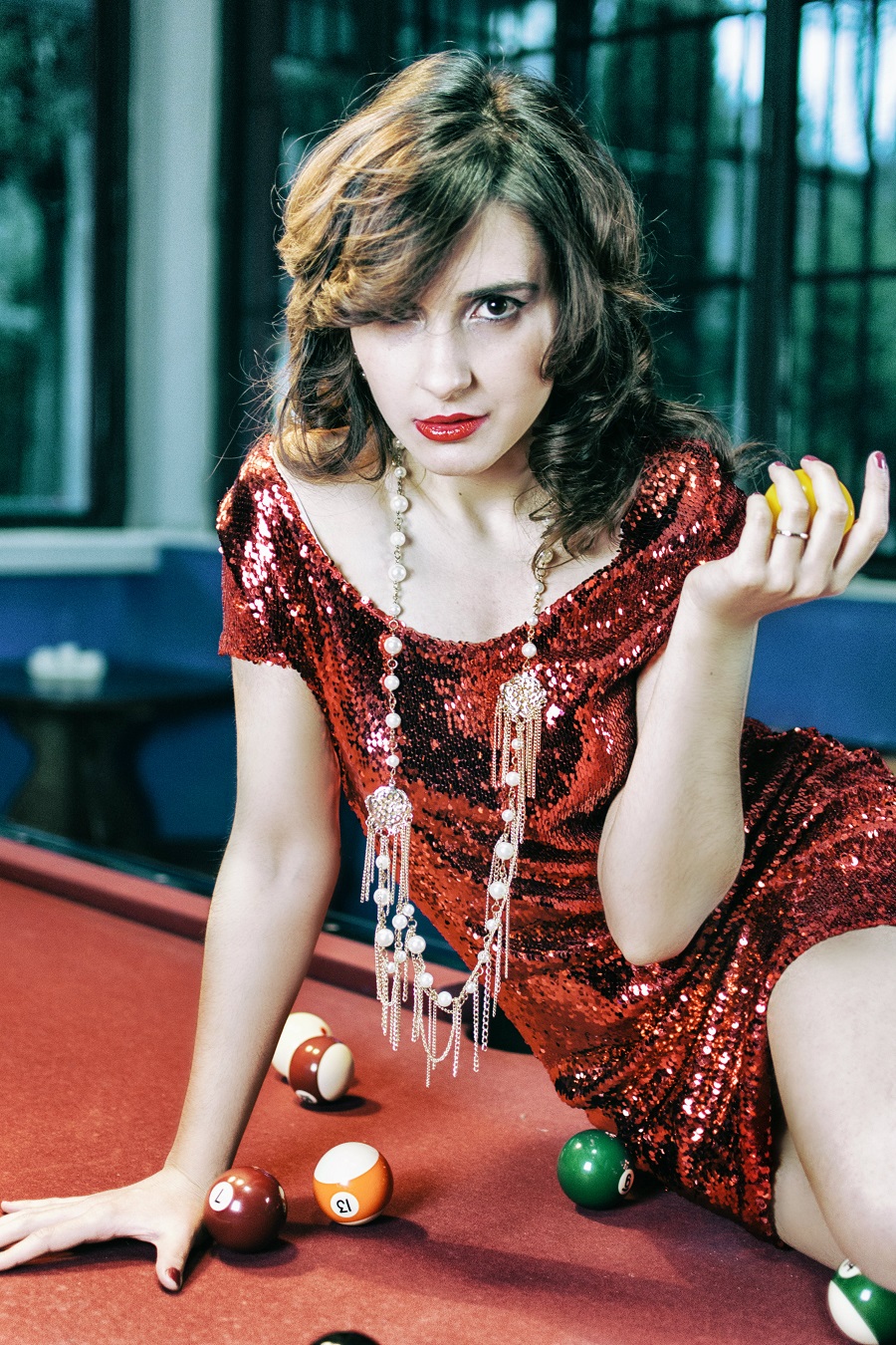 Queste sono intuizioni geniali, il biliardo e le pailettes fanno tanto femme fatale…sei di una bellezza che mozza il fiato!!! Complimentiiiiii