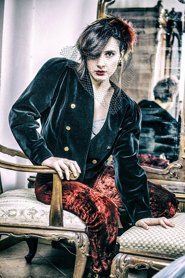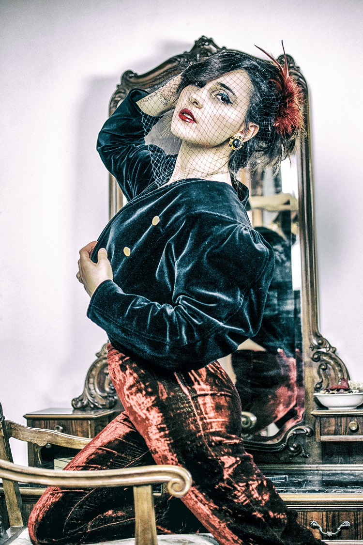 L’ispirazione che va, l’ispirazione che viene. A volte basta poco per trasformare un semplice fashion shooting in qualcosa di veramente speciale. Ormai lo sapete, i look scenografici e carichi sono il mio debole, mi piace mixare capi, creare nuove simmetrie, nuovi spunti. Come quelli che mi hanno portato a programmare lo styling di oggi, fortemente retrò con questa giacca vintage dalle ampie spalline e una veletta con tanto di piume scarlatte che richiamano i toni del velluto dei pantaloni. Immaginare mondi diversi e interpretarli è per me il modo migliore di avvicinarmi alla moda, perchè seguire le tendenze non vuol dire uniformarsi, ma cercare semplicemente il proprio stile. Basta un rossetto rosso, un raccolto romantico e dei tacchi vertiginosi per finire in un altro tempo, quello dove tutto si ferma, e forse, si smette anche di invecchiare.