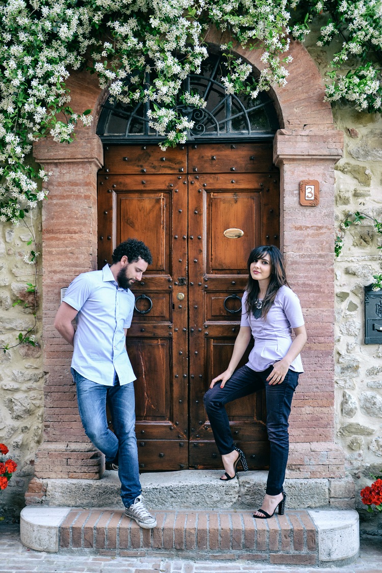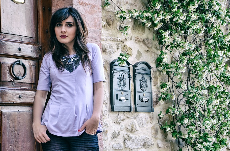 Le sorprese più belle sono nascoste nei posti più inaspettati. E’ per questo che quando Salvio mi ha portato per la prima volta a Solomeo, un paesino magico a pochi km da Perugia, mi è sembrato di trovarmi in un giardino incantato. Fiori alle finestre, antichi roseti, profumi lontani: la location perfetta per respirare di nuovo la felicità. Forse è per questo che ho deciso di farlo diventare il set di questo nuovo outfit di coppia, dedicato alla bellezza di due capi davvero speciali. Scattare in coppia è sempre una festa, è questione di sguardi, di gesti, di complicità, resa ancora più intensa dallo stile e l’eleganza di NaraCamicie. Azzurra a righe bianche per lui, violetto e con peplo per me: sono i dettagli a fare la differenza, è l’originalità che si esprime in ogni cucitura, in ogni modello, in ogni sfumatura di colore. E’ per questo che adoro indossare NaraCamicie, perchè mi permette di essere quello che sono, quello che siamo, con il minimo sforzo e il massimo stile. Sono questi i momenti che più mi piacciono: quando tutto sembra andare nel verso giusto. Fino alla più piccola piega.