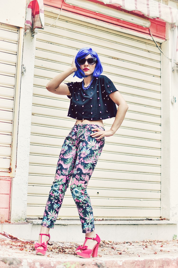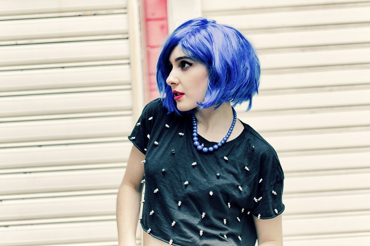 che carina che sei con la parrucca blu- Mi piace un sacco il tuo outfit e le tue foto