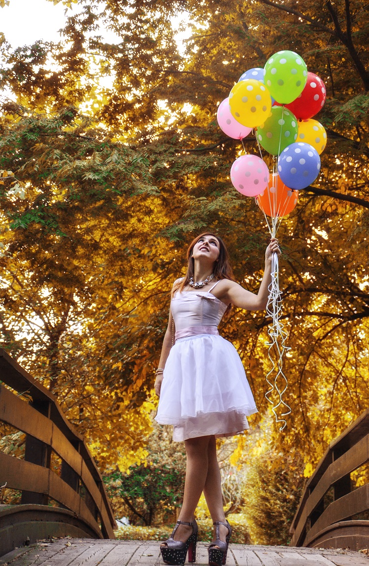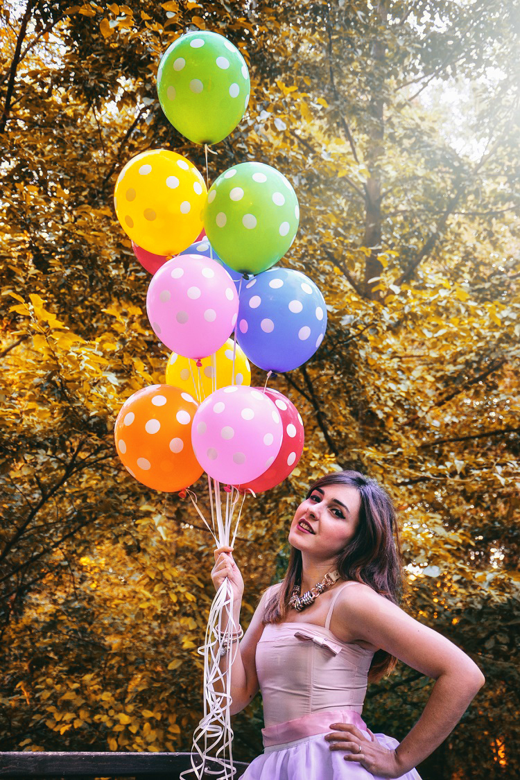 Voglia di ridere, voglia di amare, voglia di sentirsi leggere, di andare sempre più su. Ho sempre desiderato sentirmi una principessa e devo ammettere che questa volta ci sono proprio riuscita. Un parco incantato, un abitino rosa confetto e un fascio di coloratissimi palloncini a pois pronti a stupire grandi e piccini accorsi per caso sul set fotografico. E lo ammetto, è stata questa la parte più bella: vedere tutti quei piccoli occhietti sorridere di gusto, porsi domande su quella sconosciuta dalla gonna di tulle, sentirli ridere, divertirsi, chiedere una foto e poi un’altra ancora. Giallo, blu, verde, rosso… basta poco per accendere la festa, per rendere tutto un gioco, per accorgersi che la vita va vissuta con spensieratezza e allegria, che niente può risollevarci più di un sorriso. E allora ben vengano le piccole follie quotidiane, i sogni fuori dai cassetti, ben venga l’amore, il coraggio di osare, di essere ciò che si vuole, anche solo per un piccolo glorioso attimo, quello che da solo vale più di un intera vita.