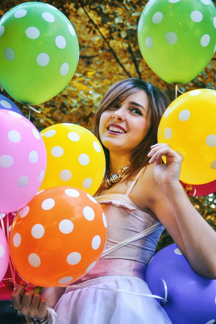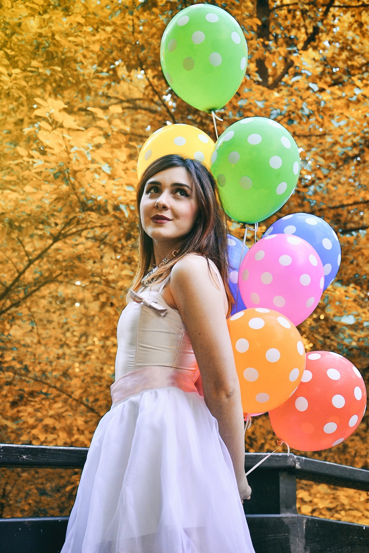 Ma che le foto con questi palloncini colorati, troppo bello il vestito