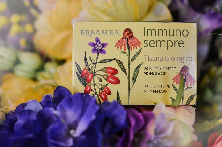 I periodi dell’anno in cui l’organismo ha bisogno di maggiore protezione sono proprio i cambi di stagione, soprattutto quello in cui ci si avvia verso il freddo invernale. E’ per questo che aiutare il sistema immunitario a svolgere le sue funzioni è fondamentale, meglio se fatto grazie a sostanze benefiche naturali, come quelle contenute nella tisana biologica Immunosempre, messa a punto con l’obiettivo di coadiuvare l’ efficienza del sistema immunitario. La sua esclusiva formula si basa sulle virtù dell’Echinacea, sull’efficacia di Astragalo e dei funghi Maitake, Shiitake e Reishi , cari alla Medicina Tradizionale Cinese, in associazione alla Vitamina C proveniente dall’ Acerola e dalla Rosa canina, che contribuisce alla normale funzione del sistema immunitario. Bastano una o due tazze al giorno per aiutare il nostro organismo a sopportare al meglio la fredda stagione. E se le tisane non sono il vostro forte? Ecco che arrivano in soccorso le altre proposte Immunosempre, come il fluido concentrato e le capsule vegetali…più semplice di così!