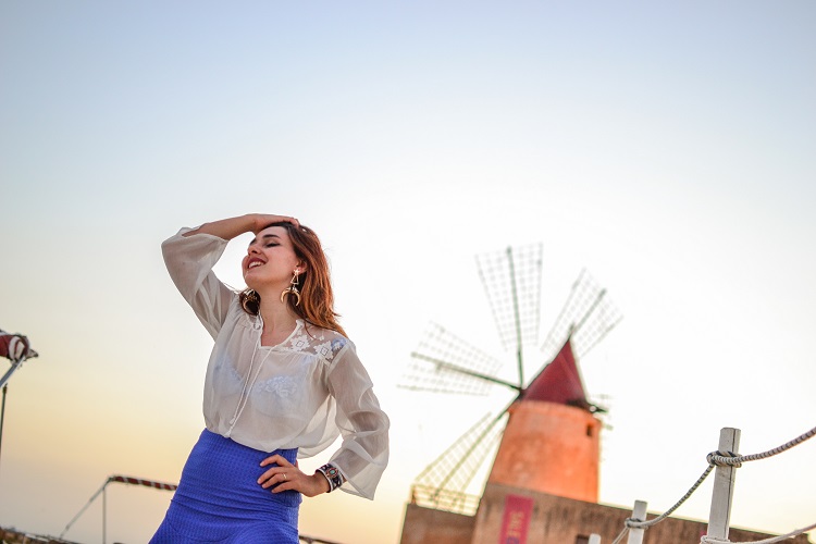 Se chiudo gli occhi li vedo ancora i mulini. Le sagome chiare perse nel cielo, le pale imponenti nell’azzurro del mare. Ad occhi chiusi mi viene meglio, perché li vedo col cuore e smetto di pensare. Vorrei raccontarvi così tante cose sulla prima volta che ho visto i mulini ma la felicità ha deciso di rubarmi le parole, ha scelto di regalarmi il silenzio. Voi come lo spieghereste l’amore? Ci sto provando, a mettere nero su bianco tutte le sensazioni provate quel giorno, ma più ci provo più mi perdo nei meandri della logica, e come saprete bene, se diventa logico smette di essere amore. Mi perdonerete quindi se non vi darò i dettagli del nostro arrivo a Marsala, se non approfondirò le sensazioni provate davanti alle meravigliose saline, alle distese di sale, ai battelli romantici, a questo paesaggio da sogno. Mi perdonerete se lascerò parlare le immagini, ignorando per una volta il vocabolario. Ci sono emozioni che solo la gioia sa spiegare.