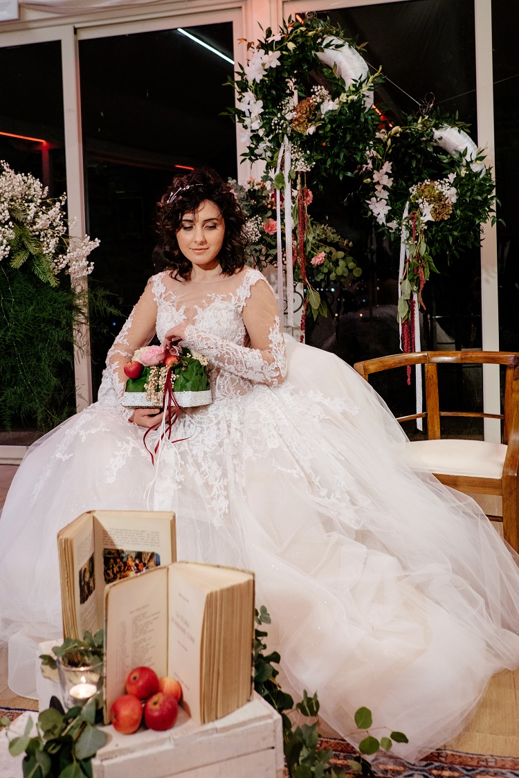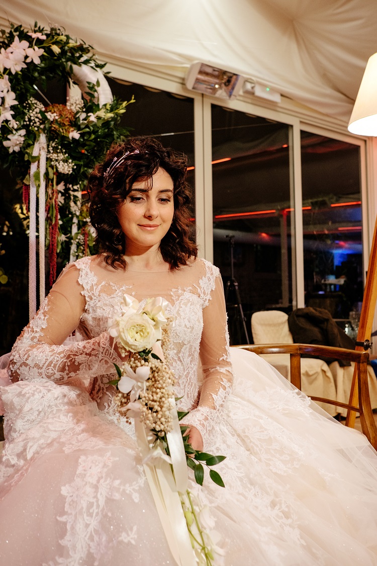 Per me ho scelto una nuvola di riccioli e un abito principesco ricco di perline, trasparenze e uno strascico lungo come il tempo che ho impiegato a rendermi conto che a tutto questo, in fondo, potrei anche abituarmici. Dopo una piccola sfilata al piano terra per raggiungere il set fotografico tra gli occhi stupiti di ospiti e amici, eccomi pronta a provare i bouquet, mentre come una sposa in piena regola venivo immortalata dagli scatti di fotografi e curiosi. Nel frattempo, la postazione di Mythique Cafè, con i suoi cocktail deliziosi e originali, ha intrattenuto gli sposi, impazienti di vedere le loro compagne fare il loro ingresso trionfale. E per completare questa esperienza da sogno, Villa Montegranelli ha offerto alle coppie partecipanti l’occasione di poter degustare una cena gourmet, dove antipasti, primi e secondi si susseguivano al ritmo della tradizione umbra, declinata in sapienti impiattamenti e accompagnata da un servizio impeccabile.
