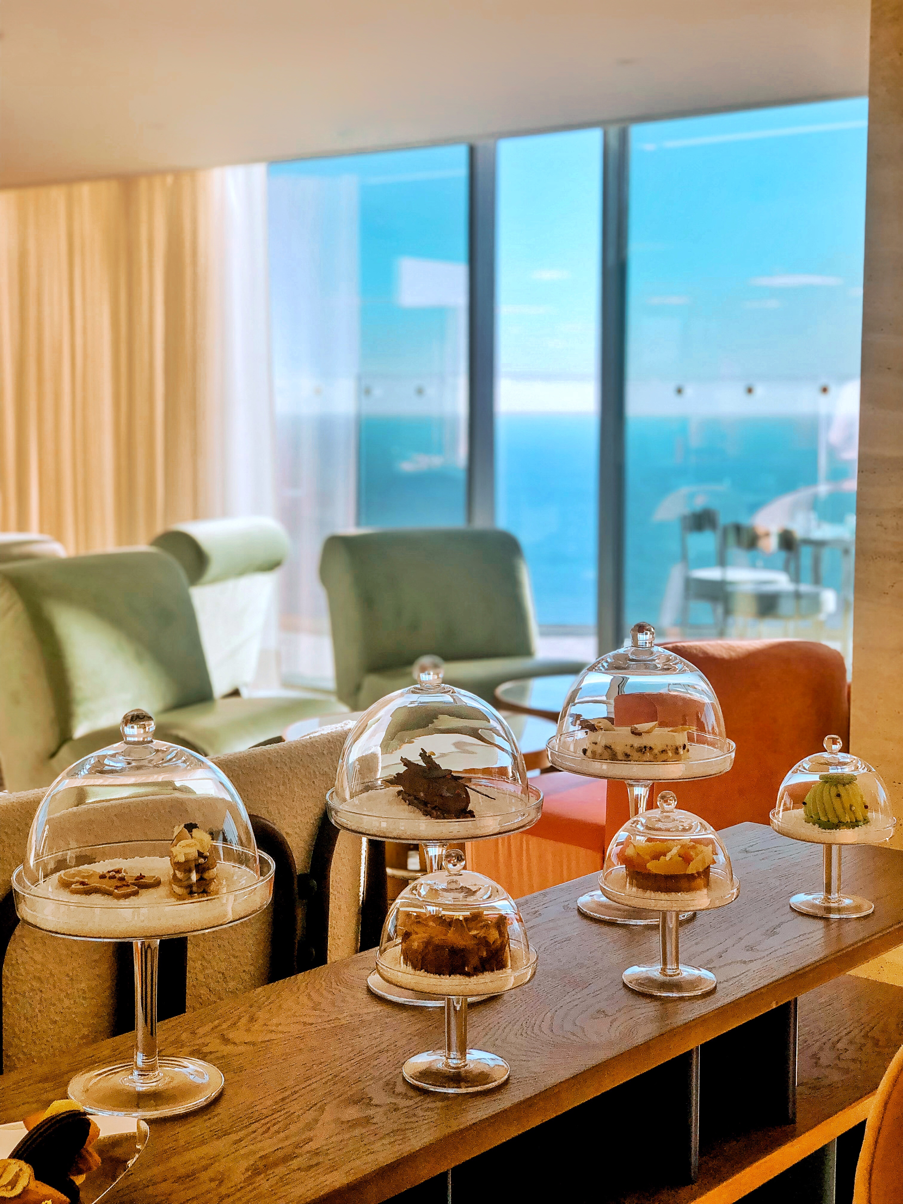 Già dall’ingresso si ha la sensazione di entrare in un posto speciale: tutto è preciso e impeccabile, a partire dallo staff, che cordialmente mi accompagna all’interno del Riviera Restaurant, dove i toni pastello si fondono col blu intenso del cielo e le eleganti note di una suonata jazz sugellano per sempre il primo sguardo su quell’invititante panorama. Tutto è sogno, misto alla sensazione di trovarsi davvero di fronte a qualcosa di straordinario e impossibile da descrivere.