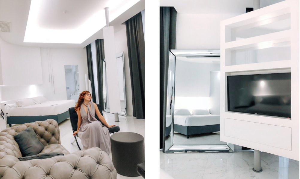Colori, profumi, suggestioni: è impossibile non rimanere incantati dal sapiente mix di design che si snoda tra classico e contemporaneo. Splendida la parete green posta all’ingresso curata da Verde Verticale, così come le suntuose istallazioni floreali che incorniciano soffitti e lampadari, chiaro omaggio alla Città dei Fiori così amata in Italia e nel mondo. Linee pulite e stile essenziale per le aree relax arredate da pezzi di design iconici e rinomati: tra lampadari di Murano e divani Chester, poltrone Barcelona e specchiere Philippe Stark, tutto segue uno stile ben preciso, composto da bellezza, arte e comfort assoluto, come quello che ritroviamo nelle 50 stanze che formano questo straordinario resort, dotate di courtesy kit ricchi e personalizzati, di comodissimi letti con corredo in piuma d’oca con lenzuola di percalle e di una “Carta dei cuscini” pronta a soddisfare le richieste più esigenti.