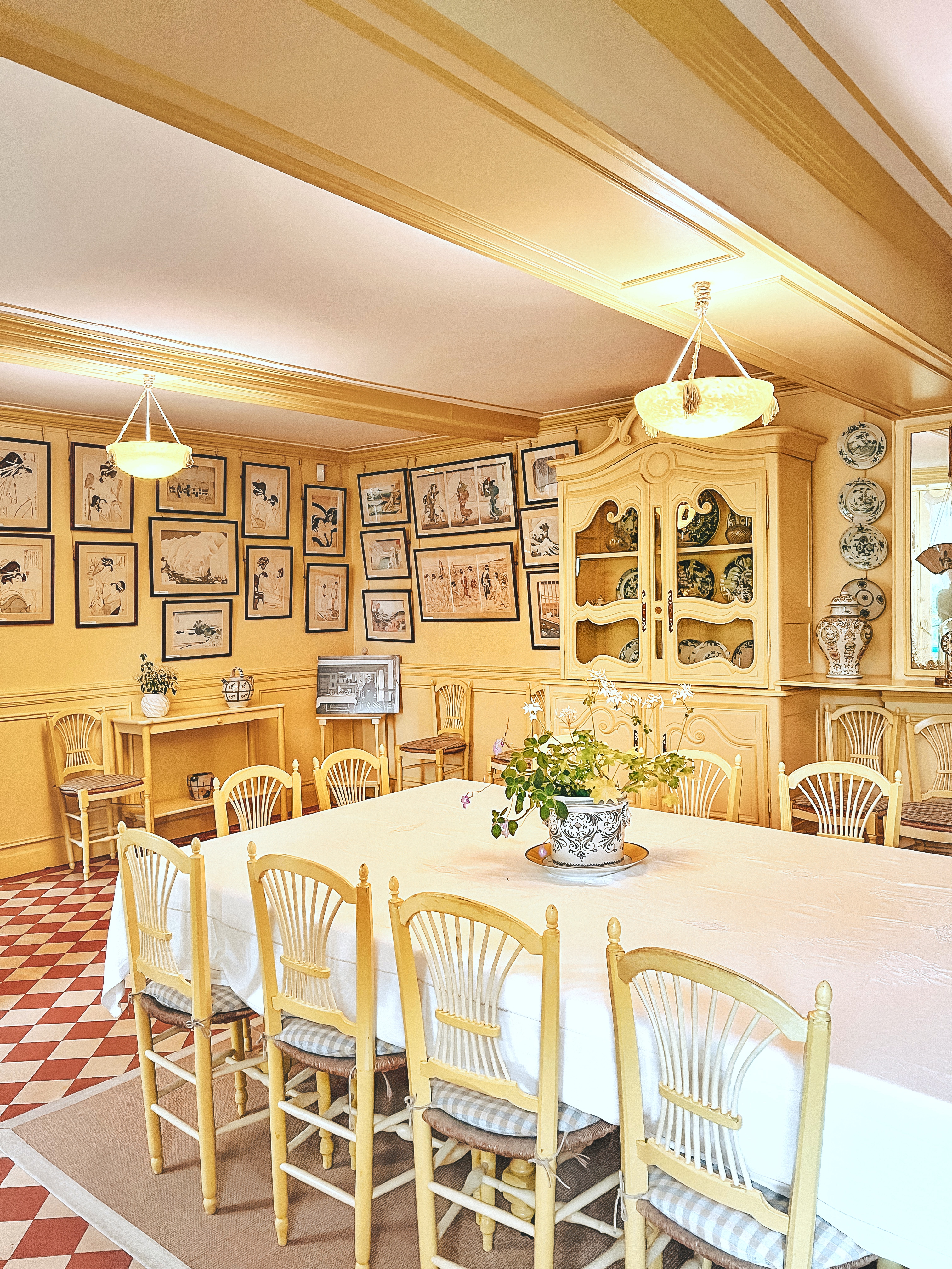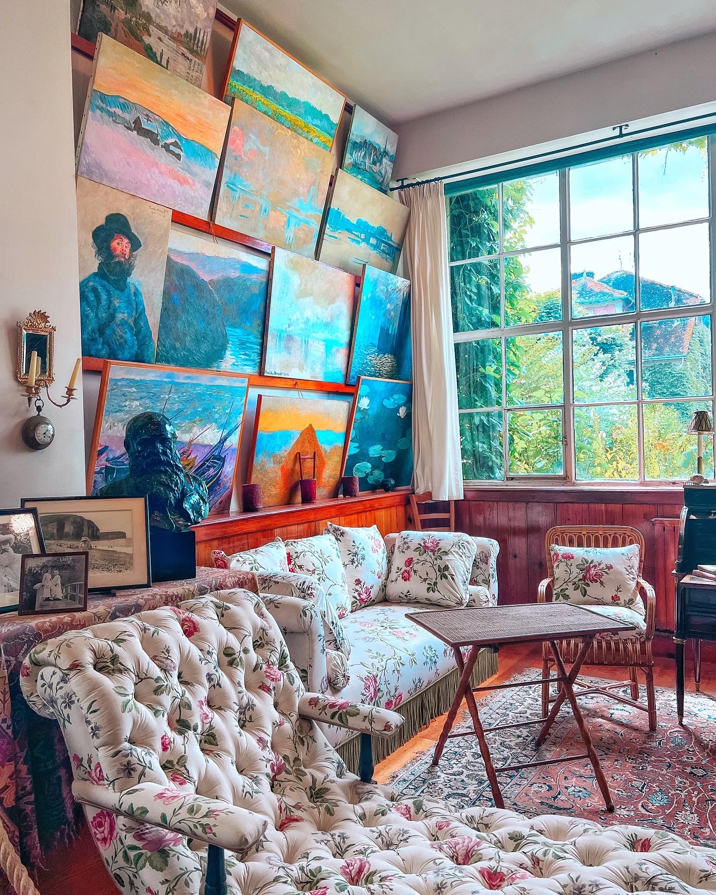 Tutto è colore, dall’interno all’esterno: La celebre facciata rosa dalle imposte verdi, la cucina blu mare, la sala da pranzo gialla e vibrante, tutto accompagnato da opere d’arte del pittore, riprodotte ed esposte in quello che fu il suo atelier e da stampe giapponesi tanto care a Monet, tra cui quelle di Hiroshige, Utamaro e Hokusai.