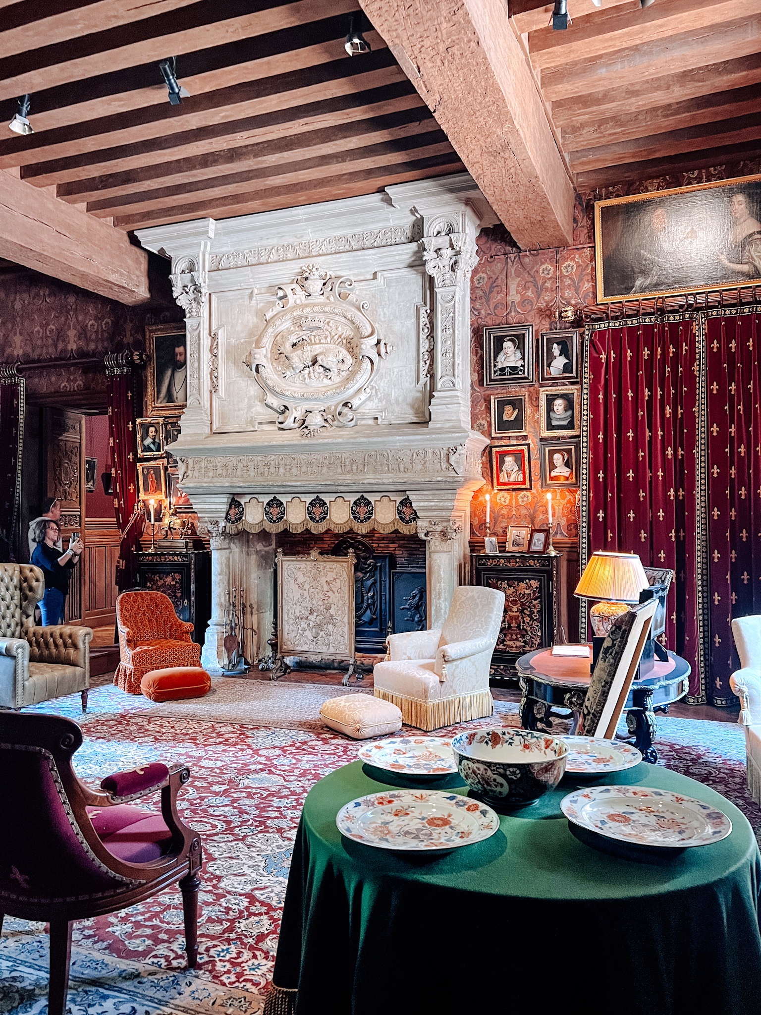L’interno rispecchia i suoi antichi fasti: è infatti arredato con arazzi, dipinti, mobili e oggetti d’arte che testimoniano ben quattro secoli di storia francese. Tra le stanze più notevoli ci sono la sala da pranzo, la cappella, il salone d’onore e la camera da letto del re, perché seppur non sia un castello reale, ha ospitato al suo interno diversi personaggi illustri tra cui lo stesso Francesco I.